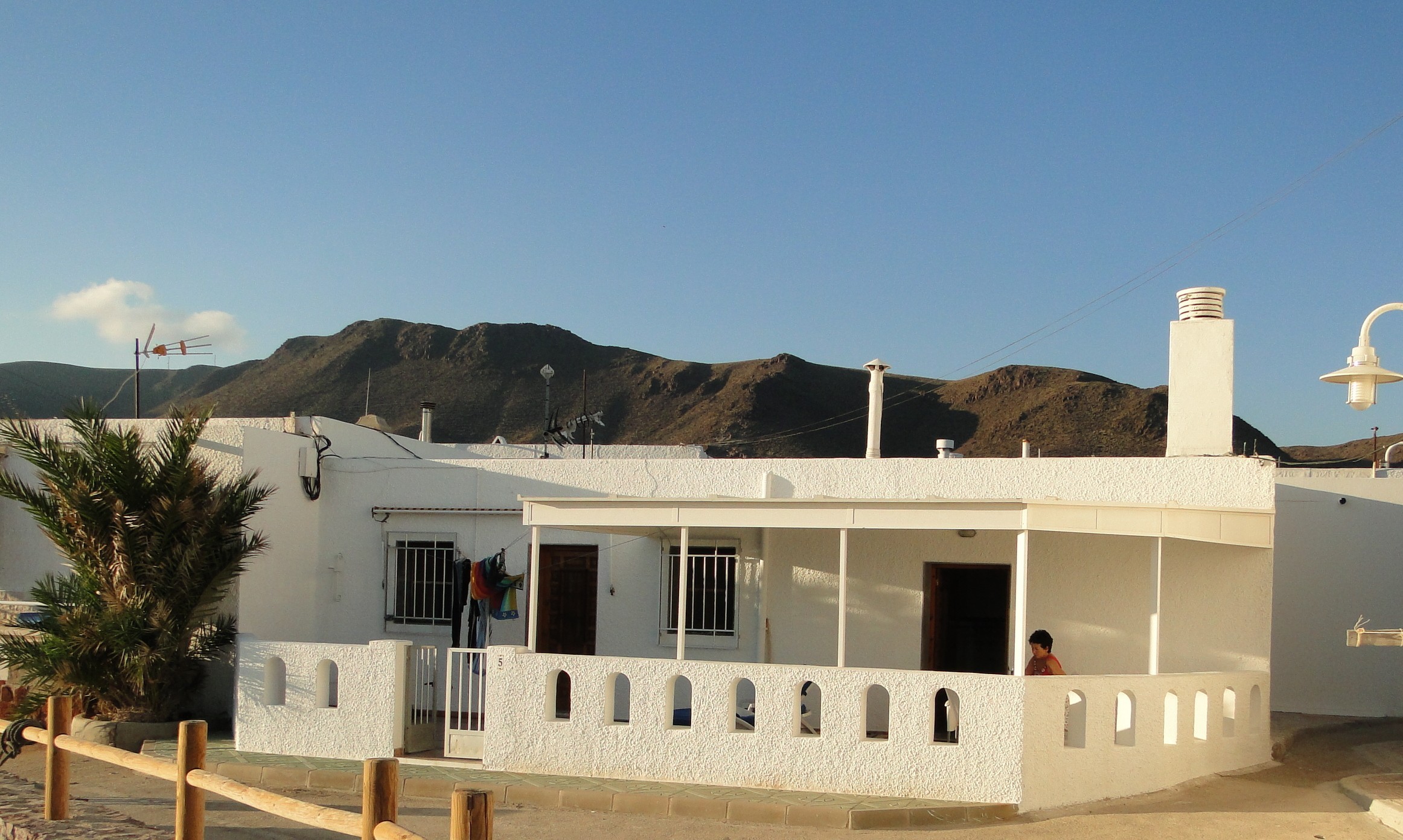 Die spanische gezimmerte Türe lädt ein ins kühle Haus. Wohnküche, Vorzimmer, 2 Schlafzimmer und 2 Nasszellen bieten den üblichen Wohnkonfort eines spanischen Ferienhauses.